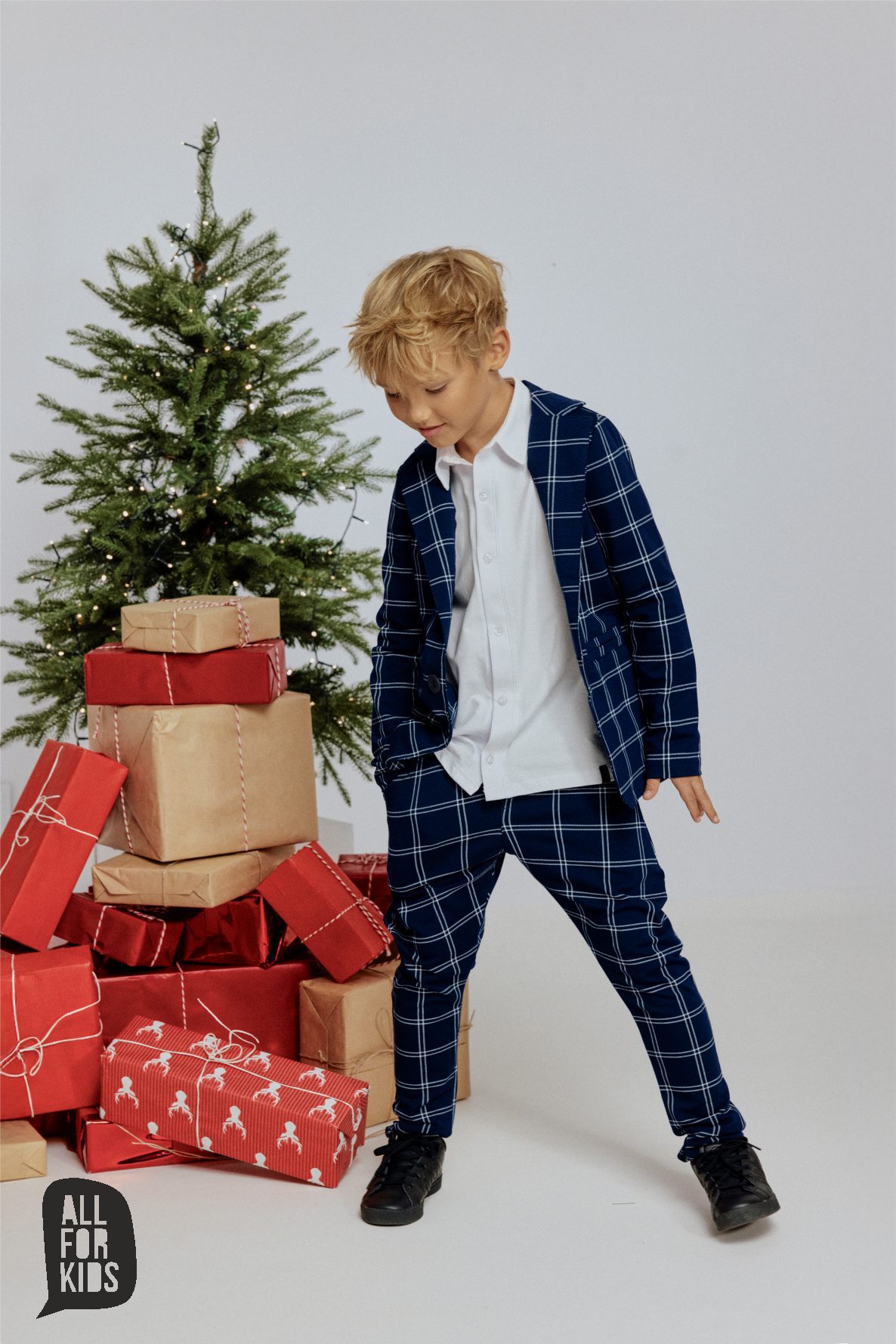 Garnitur od ALL FOR KIDS to elegancki zestaw ubrań dedykowany najmłodszym panom, którzy chcą prezentować się stylowo i z klasą. Stylizacja idealna na specjalne okazje, takie jak święta, uroczystości rodzinne czy inne wyjątkowe wydarzenia.