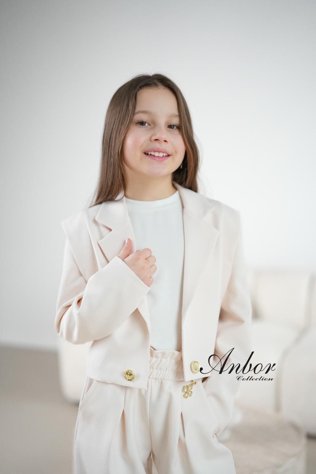 Komplet dziewczęcy elegancki beżowy Anbor – marynarka i spodnie