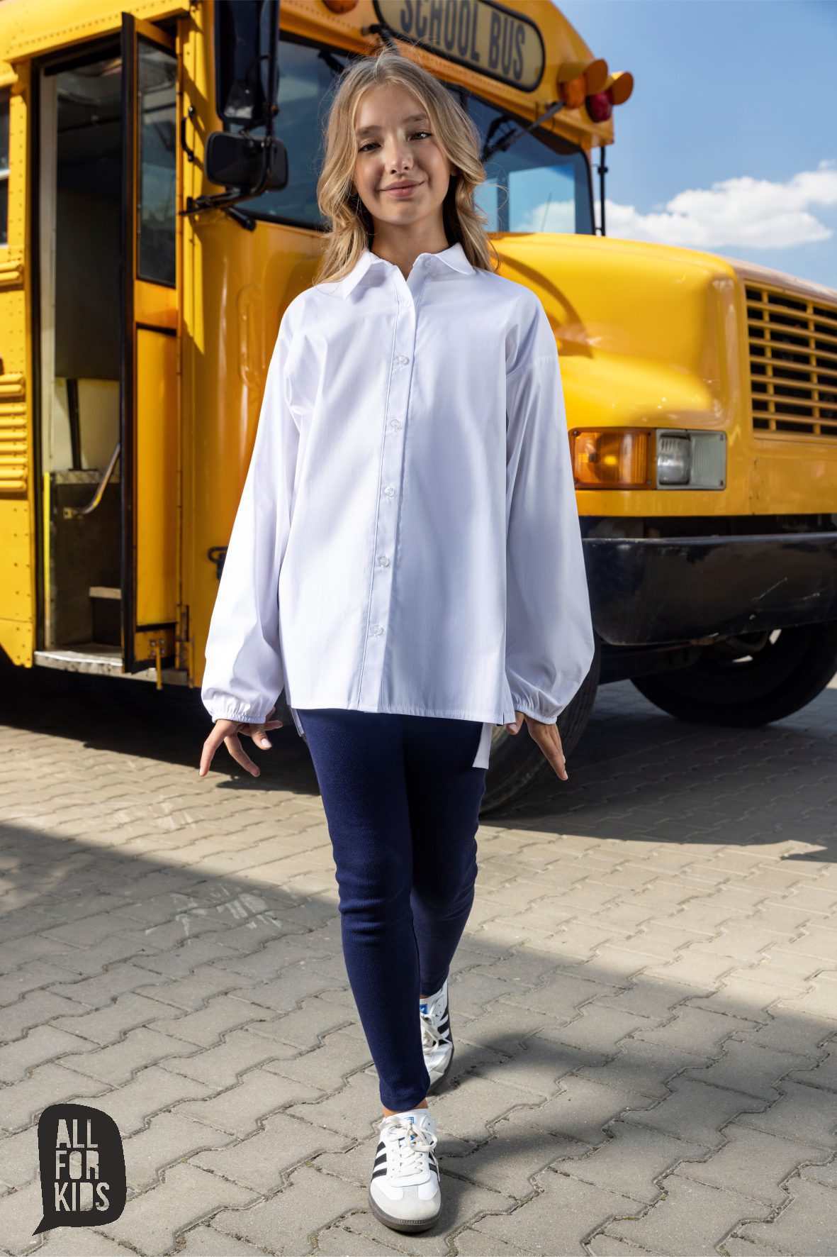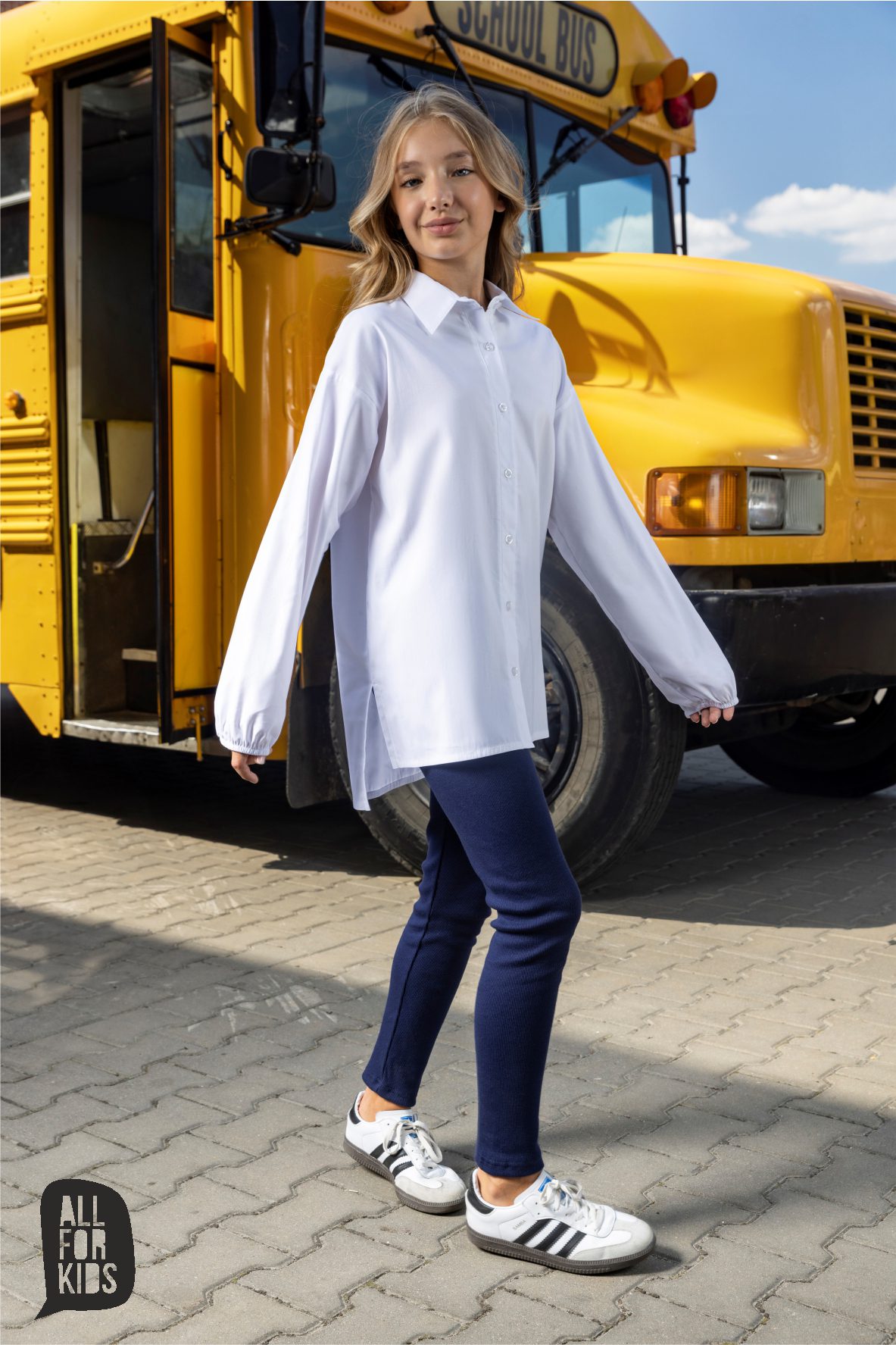 Klasyczka biała koszula od ALL FOR KIDS dla dziewczynki.
