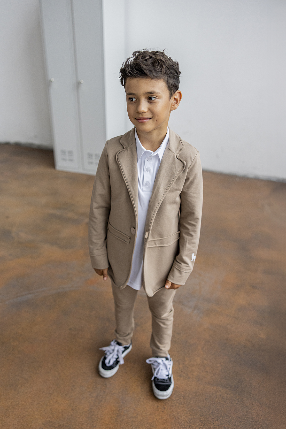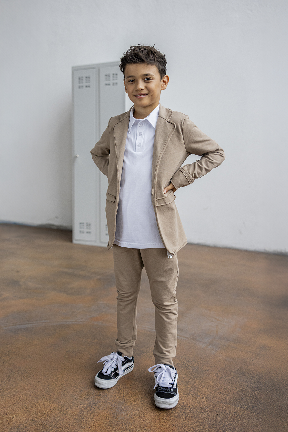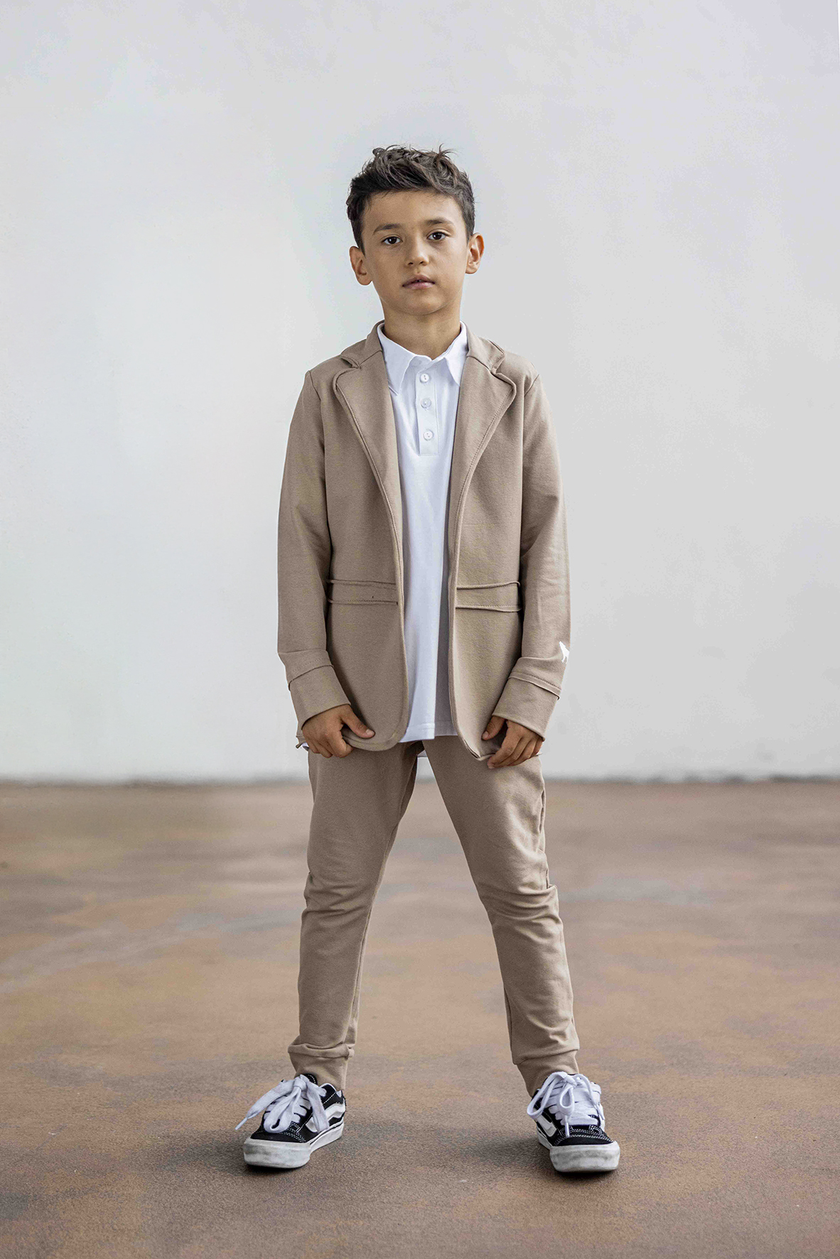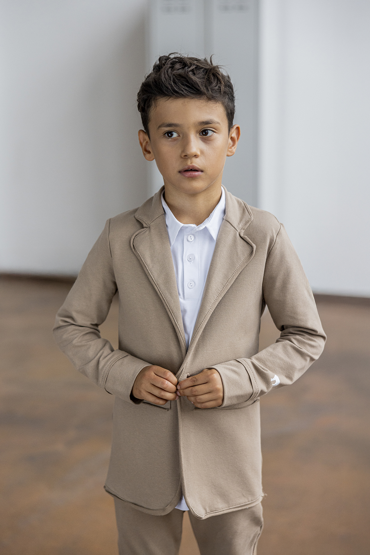 Marynarka chłopięca beżowa, polskiego producenta MashMnie.